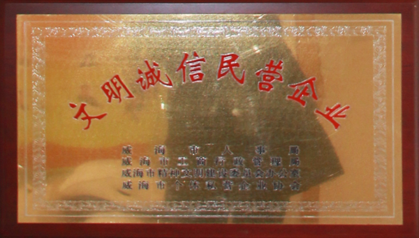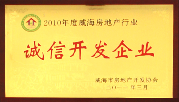 公司連續八年榮獲威海市“誠信開發企業”、“建筑施工誠信企業”,連續九年被評為威海市級“守合同重信用企業”,多次被評為威海市“市級文明單位”、“質量管理先進企業”、 “安全管理先進企業”,乳山市“優秀企業”、“先進民營企業”、“納稅明星企業”,在社會上逐步樹立了誠信、穩健的企業形象。